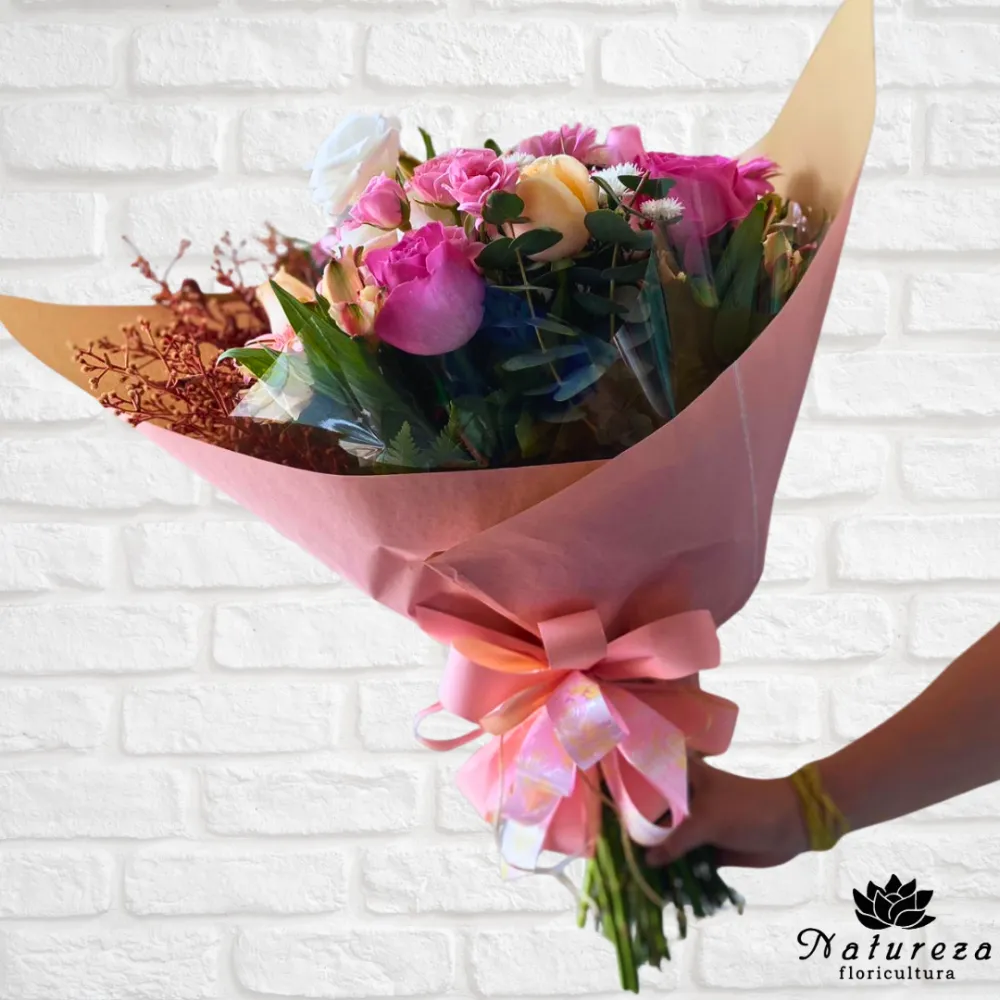 Buquê Puro Amor Flores Mistas em Tons de Rosa