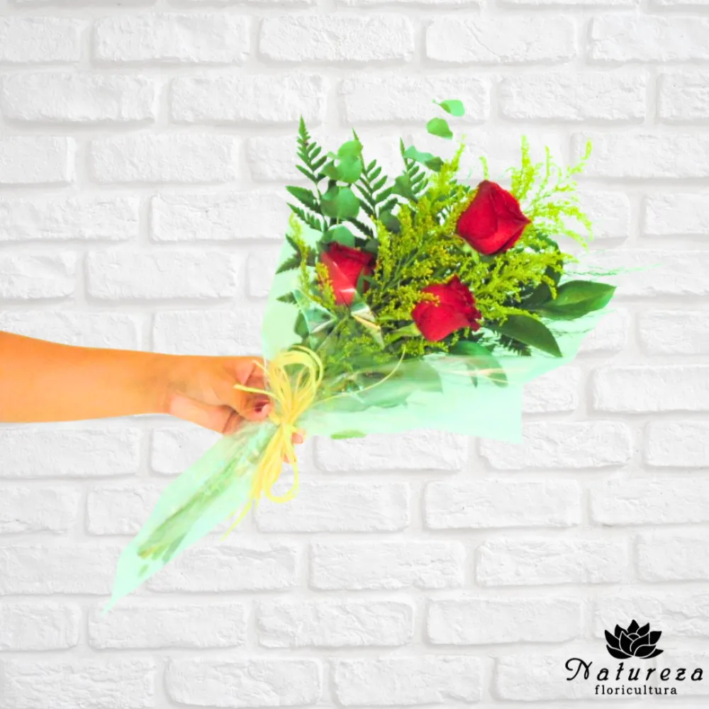 Lindo trio de rosas vermelhas com chocolate Viermon.